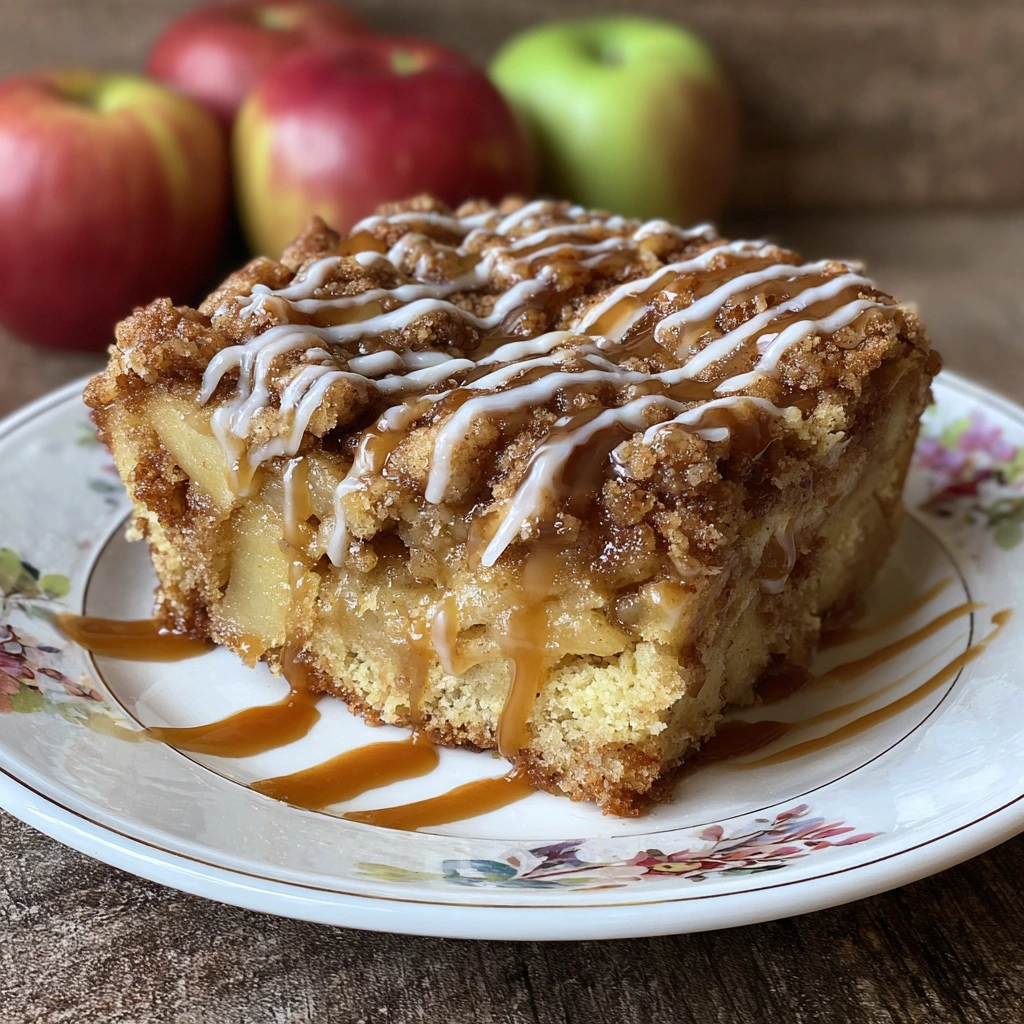 Apple Crumb Cake: A soft, buttery cake layered with warm spiced apples, finished with a crunchy crumb topping and a cinnamon apple drizzle—a cozy fall-inspired dessert you’ll want to bake year-round.