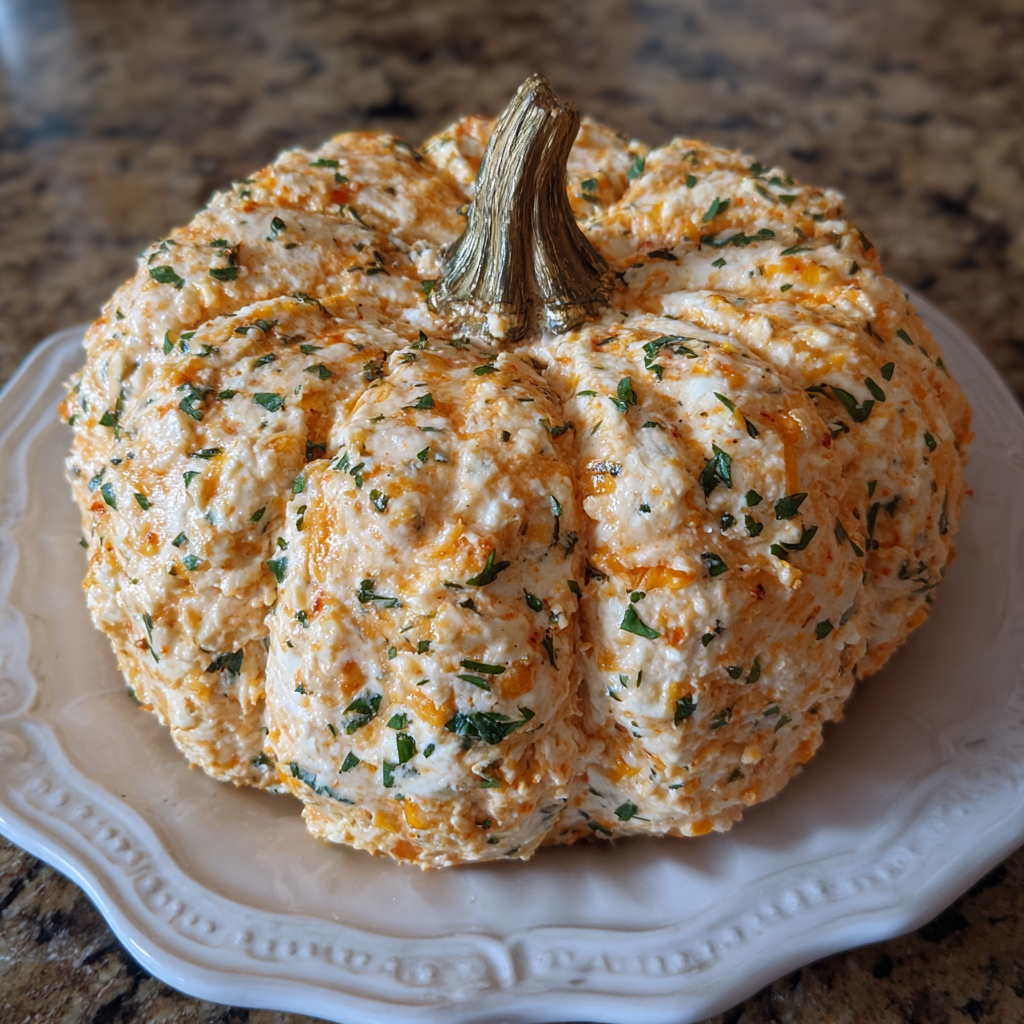 Pumpkin Shaped Cheese Ball: Creamy, cheesy centerpiece perfect for fall gatherings and festive celebrations.